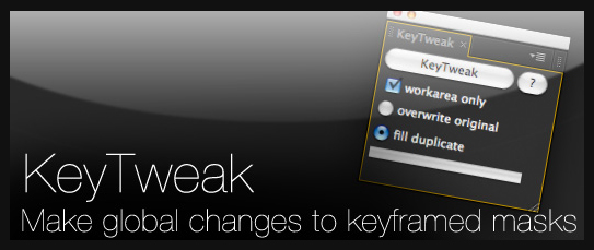 Basically what Tracker2Mask does, is computes the movement of mask shapes based on the movement of trackpoints. Using all of Mathias' scripts with eachother can greatly ease your tracking duties. Another tutorial on AEtuts+ uses this script, and the next, Keytweak in How to Track Live Video to a Postcard.