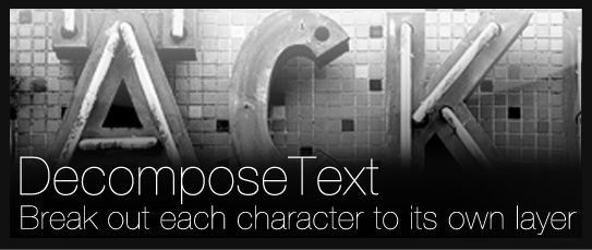 Decompose Text does exactly what its called... decomposes your text into seperate layers for each character. This can be extremely useful for individually animating per character when the built in functions just aren't enough.