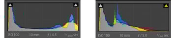 The shots have nearly identical exposures (the one on the right is only 1/3 of a stop darker than the left) and as can be seen in the histograms. The effect is more retained data with only the yellow highlights becoming slightly clipped.