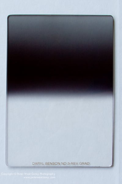 Last is the Reverse Graduated Neutral Density Filter (RGND). This filter has a very special application, although with imagination, more can exist. Its primary function is to be used at sunrise and sunset in order to block out the intense light along the horizon, but then quickly transition lower to allow the foreground mountain or ocean or object which the sun is setting over to be seen. From the darkest point and up, the filter graduates to about one stop less near the top in order to hold the sky back.