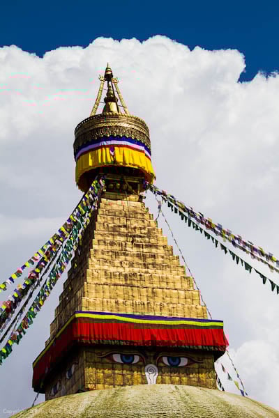 Speaking of religion, you will find it everywhere in the Nepali culture. From prayer flags flying between many buildings to cows (regarded as sacred by Hindus) roaming the streets unmolested to monks swathed in only deep maroon robes chatting on cell phones, the country embraces its two major (and many minor) religions as a daily way of life. And it shows.