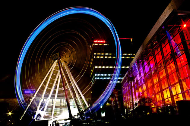 Apart from the stationary light sources, there are a great number of moving light sources available that can produce come extremely eye catching images. Cars, trains, buses, trams and ferris wheels can all be utilized for long exposure light trail shots.