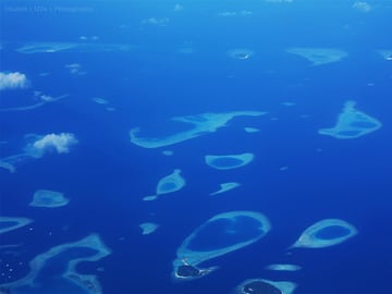 Lens choice is important when shooting the tropics from above. Which lens you choose really depends on what you want to achieve. A wide angle lens is great for including the wing of the plane as a additional interest, while a telephoto zoom lens will allow you to get in tight on the tropical setting. This may be better if you want to experiment with a wider range of focal lengths during your flight.