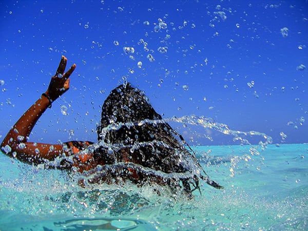 Also, you don't need an underwater kit and a scuba license to get great water shots. Staying above the surface is a fantastic way to get up close and personal with the tropical ocean water. Have a person be the subject of your water shots. Nothing says tropical like someone enjoying the warm ocean water and waves.