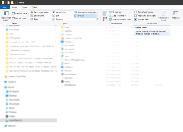 At this point you’ll need to access a folder that’s usually hidden, so click View on your menu at the top and check the box marked Hidden Items.