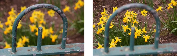 This pair of shots was taken at maximum focal length, maximum aperture and minimum focus distance. It gives you an idea of the depth of field effects that the XZ-1 can achieve, but that's under maximum provocation. At shorter focal lengths and normal shooting distances you won't get this degree of defocusing, even wide open.