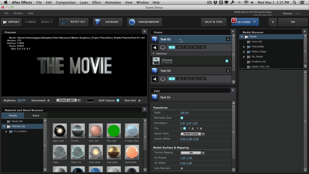 Today we take a quick look at creating some fractured text using Cinema 4D and set the rough animation up using Element 3D.