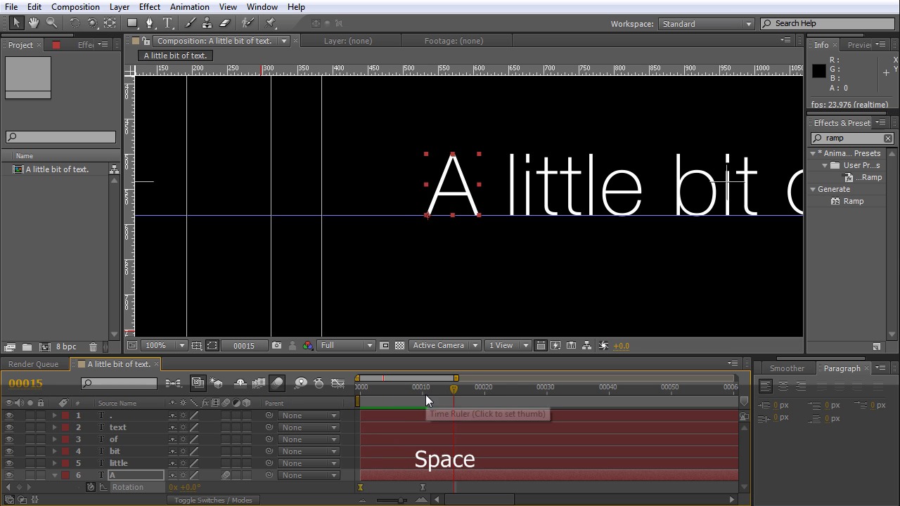 In this section we will create a little example project using 2 text animation styles. We will focus on making it look right by tweaking out the keyframes.