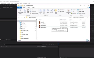 Hi everyone, and welcome back to the Animated Icon course. In this lesson we'll be going through how to save and export our icons into After Effects. So let's begin by saving each of our icons into individual illustrator files starting with the mail icon. We'll go over to File, Save As, and then just choose a directory for where you want to save your icon. I'm going to name this icon, Mail. I'm just going to save it on my desktop, then just keeping everything in it's defaults, we'll click OK. And we'll just go over to our lock icon. Make sure that this is visible, and remove the visibility for our Mail icon. So now that we've got our lock icon visible, we'll go over to File, Save As, and then just rename this icon, Lock. Saving it in the same place. And the same thing again with our shop icon. So remove the visibility for our lock icon, make our shop icon visible. Go over to File, Save As, and let's name this Shop. So now we have the three icons saved in their own individual files, let's head over to After Effects where we'll be exporting them. Okay, now that we're in Adobe After Effects, let's go ahead and import our Adobe Illustrator files into our new project. So heading over to where we saved our files, we will start with the mail icon. So all we need to do from here is drag and drop the Illustrator file into our project like so, and then wait for it to register. And then we're going to drag and drop the illustrator file into our composition, like so. Now from here, all we need to do right-click on the Illustrator file and go down to create shapes from vector layer. So once you clicked on that, we'll create a new sort of shape layer. And we can delete our Illustrator there. Now from here we want to open up this layer here, and where it says Add, we wanna click on the arrow button and select Trim Paths. Now from here, we can actually see how the animation will look, so we can test it out. So just go to Trim Pass, open it up. And then just using the mouse, we can sort of move from left to right. We can actually see how the animation or how the line follows the path that we created, which is pretty cool. Excellent. So that's how you import your Illustrator files into our After Effects. Let's go ahead and do the same for the other icons as well. So going back, let's important the lock icon. And we'll also import the shop icon too. So that's it for this video. In the next video, we'll go ahead and actually animate all our icons, starting with the mail icon. See you there.