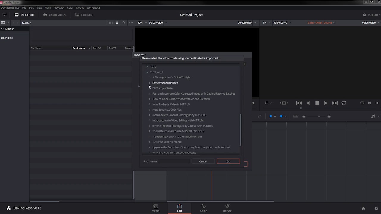 Resolve makes it easy to work with other applications like Adobe's Premier Pro, Apple's Final Cut Pro X, Avid's Media Composer, and many others because it supports XML, AAF, and EDL import and export workflows. So, let's show you two ways that you can import your footage depending on what application you're using, what video codecs you are working with. The easiest thing to do would be to export an XML file if you're on Premiere or final cut. And if you're using media composer, you can do the same thing using AAF. For other applications you may not have the option to export in a format that will let you import directly. If you're using something else like HitFilm or Lightworks you may not have the option to export an XML, so you may have to do something a little bit different. First, I want to show you how to import a project from Premiere. This process should be very similar if you are importing from Final Cut and Avid as well, so want to come over here to file import AAF, EDL, XML.. And I'm going to choose my XML file that I exported from Premier. Now, you can see that there are a few versions of MyXML file and that's because this process is not always straightforward. You may have issues exporting if you're using any kind of effects, if you're modifying the speed of any of your clips. And certain codecs do not work very well when you're trying to export your project from premiere and import it to resolve. For example, my Canon C100 files work just fine in resolve and they work just fine and Premier want to export an XML using those MT's files they do not import directly into resolve. This is because there is some kind of strangeness in the AVC HD timecode for the individual files and they don't work exactly. There are some workarounds where you can import the clips directly and then force conform inside of Resolve. But I want to show you a project that uses ProRes files because it's much more straightforward. So, I'm going to select this XML file right here, then it brings up a dialog box with a bunch of options. Primarily you want to be looking for automatic set project settings automatically import source clips into the media pool and you can pretty much leave all the rest of the options at their defaults. The timeline is the only time on that I have in Premier. So, I'm just going to click OK, and there you go. This is the project in its entirety it's five clips and that's pretty much it. Now in Premiere, I left a few seconds of these reference clips in here you can see there's one right here with me holding this color checker and then there's another one right here just a second or so. And in an upcoming lesson, I'm going to show you how to use these reference clips to color correct the other clips that don't have those reference targets in them. It's very fast and it's very easy. These files import just fine, there are several other cameras that have the right kind of time code that works just fine. This is something that you're gonna wanna investigate before you get involved in a super huge project and try this workflow. You're gonna want to set something up in Premiere, just a small little project, export an XML file, and see if it imports into Resolve before you get involved in a super big project and find out that you need to do a lot of work to make it work in Resolve. So, that's one way it's very quick, it's very easy this is exactly how this timeline looks in Premiere and I can get to work coloring this and then exploiting it and re-importing into Premier should be no problem. I'm going to select all of these and get rid of them here. And I'll show you what happens if I try in import one of those other files. So, this guy right here, the same process. I'm gonna leave the settings at their default and when I click OK, it says 15 of 15 clips were not found yet. Well, there's actually only five clips, so already there's a little bit of a red flag here. I want to tell it to search and point it in the right folder. And it says five clips were found, those are the right five clips, but it's still looking for another 10 clips. I'm going to say no and then I get this big fat error dialog box here that says something's wrong with the time code here in the real names. None of the clips work and if I come over here you can see none of these clips are working quite right. So, there is a little bit of a workaround for this. I'm just going to get rid of this stuff right here I'm gonna navigate to the folder where I have these clips located, right here, I'm gonna import these into the media pool then I'm going to import my project again, and this time I'm going to not automatically import source clips. Alright, so, I get the same problem again. The time code doesn't match with the clips in the media pool. So, what I can do here and this is a little bit labor intensive but it is one workaround is I'm gonna select the clip in the timeline here. You can see this is 00000. I'm gonna select the clip in the media pool. Right click here on the clip in the timeline and say force conform. It's just off the screen here. So, right here force conform with selected media pool clip and that didn't work because I had it selected on the wrong clip. So, let me try that again. Force conform with selected media pool clip. And now, I have that lined up there. Now you have to do this individually to all of your clips, so again, when I do it to this clip right here. Now this is only a partial workaround because I have the right clip duration and the right clip is now in the timeline. Unfortunately, it doesn't have the right in and out point. It defaults to the very beginning of the clip which is not right. You can see I deliberately trimmed this part out here where I'm sticking my tongue out for no apparent reason. And so, this clip you'd have to go back and manually adjust all of these clips which is kind of a pain. So, if this doesn't work for you and the time code is still goofed up. You're going to have to