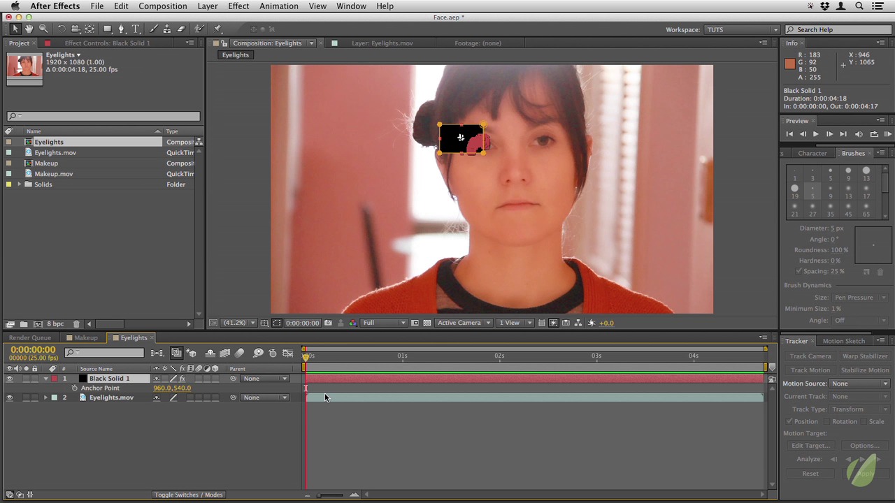 When an actor's eyes appear indistinct, tiny reflections can be added and tracked into place to make the eyes look clear and bright. We learn how in this final lesson of the course.
