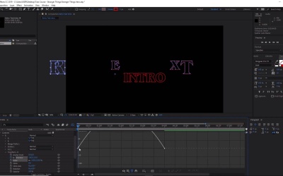 Hi everyone, and welcome back to the Stranger Things 80s intro course. In this lesson, we'll learn how to animate the text. So before we begin, let's go ahead and zoom into our text here. And I want to address that fact that the lines or the strokes of this text is little bit too thick for my liking. So to change this, let's go ahead and select one of our layers. So I'm just going to select the top text here, Retro Text. And to change the thickness of the stroke, just go to the top here and select a value. So right now we're at 6. So let's change that to 4. And you'll see straightaway, the line of the text has become thinner. So if we hide our middle text here, you'll see the difference between the thickness of the stroke. So this is what we had before and this is what we have now. So let's go ahead ahead and do the same for the intro text here. So select intro here and we'll do the same. So let's change this from 6 to 4 like so. And now we need to change the middle text. So if I hide the top line here and bring back our actual text layer. Now, because this isn't a shape layer, the way that we change the thickness of the stroke is over the right hand side of the screen here. So let's set the stroke width here from 6 to 4 like so, cool. Now everything is the correct thickness. Now if you look carefully, you'll notice that the thickness of the bigger letters, the R and the T, look a little bit thicker. So we can change this individually by actually going inside the layer here, going into Contents, select the R letter, open that up. And you'll notice that we've got a section for stroke here, so let's open that up. And change the stroke width from 4 to about 3. So that looks a little bit closer to the thickness of what we have to the other letters. And we'll do the same for the T here as well. So let's select the T, open that up, open the stroke up here. And let's change the stroke width from 4 to 3 as well, excellent. Now we're ready to animate the text. So let's close all of this up. Make it neat like so. Now, if you remember, in the last video, I mentioned that there was a quick animation trick that we could use to animate the center text layer without needing to separate each of the individual letters like we have for these two shape layers. So to do this, let's go ahead and hide the top layer here so that we can just see our text layer here. Select that. And now we need to open this up to reveal our menu here. And over to the right, where it says Animate, just click on this little arrow button here. And we want to select Tracking. So select Tracking. And now this will apply some new animation options to our text layer. So make sure we're at the very beginning of our timeline by scrubbing backwards and forwards like so. And we want to select Tracking Amount, so make sure that Tracking Amount is selected. And select the keyframe icon here to create a keyframe. So now that we've got keyframe here, let's move four seconds into our timeline, and create another keyframe. So our animation is going to last four seconds. Go back to our first keyframe, and we want to set a tracking amount of about 120, cool. And you notice straightaway the letters have now become a little bit more spread out. So if we scrub backwards and forwards in our timeline, our text is now animating. Excellent, cool. So it goes from further apart to close together. Now what we want to do is we want to adjust the speed of our animation. So right now, it's all one speed. But if we go ahead and select both these key frames like so, right-click, and then go to Keyframe Assistant, and then select Easy Ease. This will make it so that the speed of our animation is a little bit more natural. By slowing it down at the beginning, speeding it up in the middle, and then slowing it down again, instead of keeping it at the same rate. Now you'll be able to see this a little bit clearer if we go into the graph editor. So make sure both keyframes are selected. Go to the graph editor. And if we move down here, you'll see that the speed of the animation is represented by this line here. So it goes from slow to fast and then back down to slow again. So we can manipulate this speed further by clicking on these keyframes here and just moving the handles like so. So let's move the handles just a little bit more like that. And now if we select the preview button, it goes from slow to fast and then slow again, cool. Now let's go ahead and go out of this, and animate the rest of the text. Awesome, so now let's go ahead and go out of this graph editor. Deselect the text layer here and select our top text here, Retro Text. Let's open this up, go to Contents, and let's remove the middle text here. So we don't need these middle texts as we've got our text layer at the top here. So let's get rid with the T, the R, the O, the T, and the E. And if we go to four seconds and select our text layer, you'll see that everything is as it should be, cool. So let's go back to the beginning of our timeline and let's start by animating our letter R here. So let's open this up. Go to our Transform here, and let's select the keyframe for position. And then create a keyframe for four seconds, just like what we did with our text layer. And once we go back to the beginning of our timeline, let's go ahead and change the position of the R like so. So let's bring it all the way to the right side of the screen. And now you'll see in four seconds it moves back in. Select both keyframes, right click > Keyframe Assistant, and Easy Ease. And if you want, you can also go to the graph editor, select the handles here, and move them in a little bit like so, cool. Let's close the R up and let's do the same for the letter E. So let's go to the beginning of our timeline, open the E up. Go to transform, create two keyframes, one for the beginning and one for four seconds. Go back to the beginning again. And let's move the E to the very top of our screen like so, cool. So let's select tho