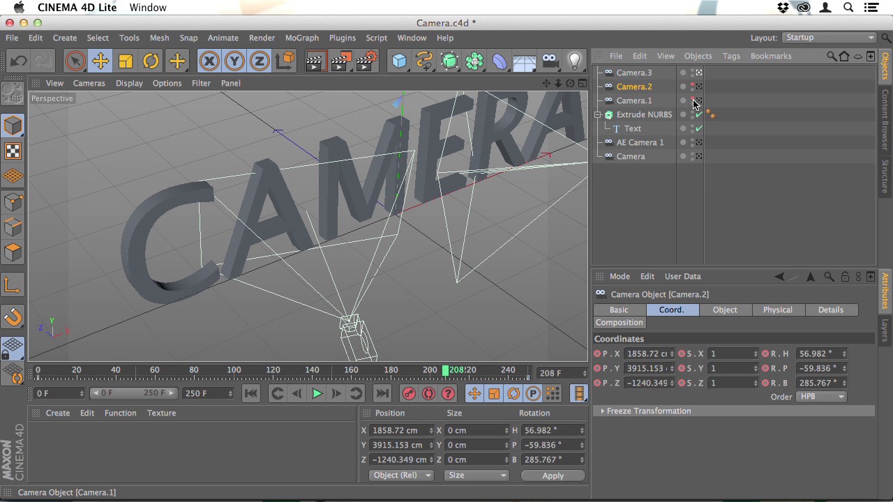 Using Adobe After Effects cameras, and the cameras that are created and animated inside Cinema 4D - you can create the opportunity for some complex editing. We can then move all cameras to Adobe After Effects, and cut between them to create a final composition.