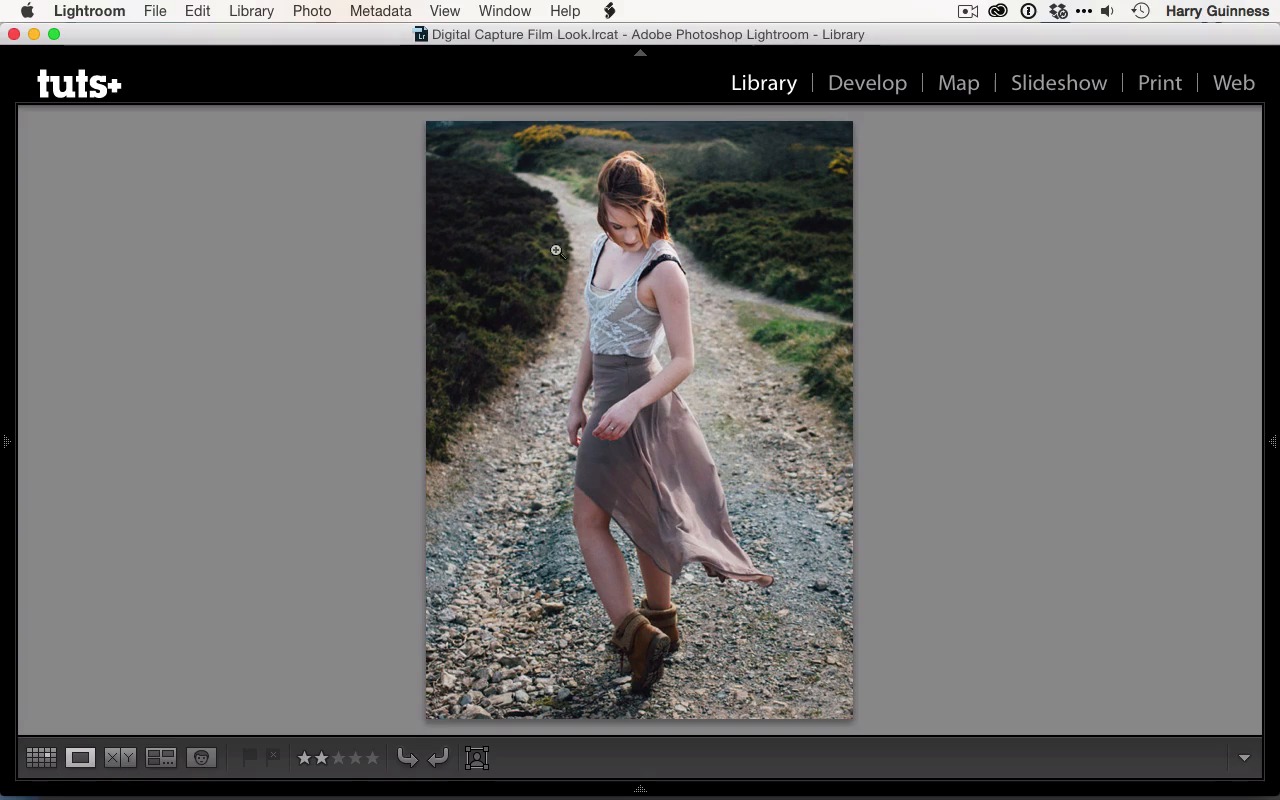 Hi, and welcome back. In the previous couple of movies, we edited the image to reach this point. I think it looks really great. As I mentioned in the first chapter, one of the greatest strengths film has over digital is that it's got a consistent look. You can recreate the consistency of that by following a workflow and using things like presets as a starting point in Lightroom, to get it so that images look related and look at least as if they're part of the same body of work. First we're gonna have a look at some other images that I approached with the same three sets and the same style. This is a shot of a model I shot this about three months after I shot the previous image with Allie, and you can see that Allie's was shot in winter, so it's a lot darker. Whereas was shot in the middle of spring, and we're starting to see we've got a lot more spring light and a lot more greens. But the images are quite consistent. Even though the shot with Allie is a lot darker, they're still the same strength of greens and the oranges in the skin that Kodak Gold is known for. And next we got another shot of Allie. This image didn't have anywhere near as much as in the way of greens to begin with. But with the Kodak Gold 100 preset, they've been pulled in. And what's really being emphasized in this shot is the oranges. There's a little bit of orange brought into the path here, in Allie's skin, on her hair looks great in this. And so you can see that again, while it's a different look, and a different photo to the previous two, it still has many things in common, and if you were to see these on a wall beside each other, you would consider them to be related, rather than three totally different unrelated images. Finally, I've got another shot of Allie,, and this was shot on the same day as the previous one. And you can see, she's heavily back lit from the sun. But as you can see, again, that the greens are really being emphasized in the highlights there and the oranges in her skin and in her hair and in the light. You can see that even though it's, again, a different shot and different style of image, it still has elements that link it with the previous images. By using presets, or working in the same way, you can emulate this which came for free with film, but with digital you've gotta work for. So finally, let's just revisit the image that we've made for one last time. I'm really happy with this shot. I think it's really nice. I think the Kodak Gold 100 is a preset that really works and created a really solid base, and the local adjustments and all the global changes we made have really pulled this out and made it into a great shot. In the next chapter, I'm gonna review that everything I've said and wrap things up.