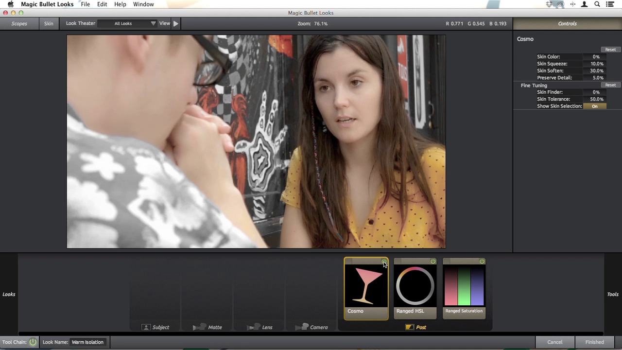 Now you’ll set up a workflow for working with the presets in Magic Bullet Looks. This lesson also covers masking and blending techniques to control how much of the effect is applied to your footage.