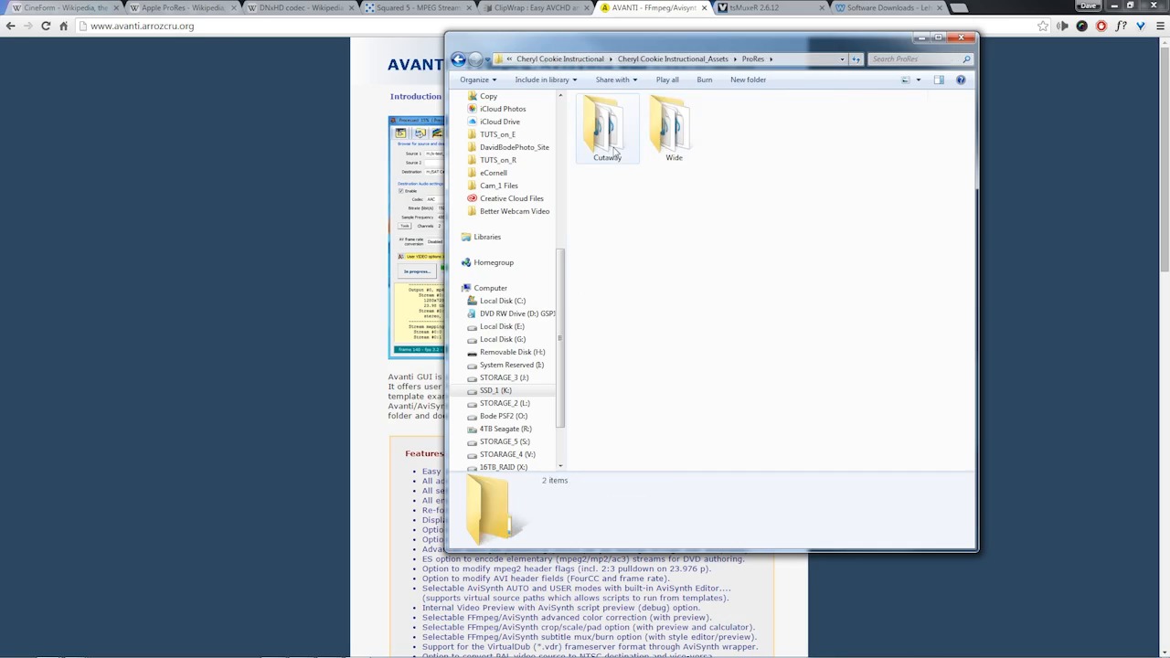 Depending on your video files and your computer hardware, you may need to transcode your footage for best performance. In this lesson, you will learn what, why, and how to do it. So before we go too much further, I'm going to take a few of these folders here that I've created and just get rid of them by selecting them and then deleting them. Now, if I jump into one of these folders, and pull out a clip on the timeline here, I just wanna show you what I'm talking about when it comes to performance. So if you look at these file names here, you'll see that all of them have a .mpeg4 file extension. And all of these have been encoded to that AVCHD format. It's a flavor of H.264. And HitFilm does not perform very well with these kind of files. You'll notice as I'm scrubbing along the timeline here with this current time indicator by just clicking and dragging, the playback is a little bit stuttery. The CTI right here, or the current time indicator, is not keeping up with my mouse. And so, trying to use these types of files in edit process would be very tedious because HitFilm would constantly be lagging behind and it would just be really frustrating to try and use. So the solution to this is to transcode the footage into something that's easier for HitFilm to work with. Now, the transcoding process takes this highly compressed AVCHD video file and turns that into something that's much easier to work with. The end result is that you get a video file that essentially looks indistinguishable from the original. It plays back much faster, but is much, much larger in terms of the file size. So I'm gonna get rid of this for now. And I wanna show you just a few of the options you have for transcoding your footage. Now, you need to know what you're going to transcode it to. So I have some tabs open here and I wanna walk you through some of the types of codex that you are going to want to transcode your footage to. There are a few industry standards that have very good quality, and they work well with all kinds of editors. One of those is CineForm, which is now owned by GoPro. Another is Apple's ProRes. And the third is Avid's DNxHD. All three of these provide a very high quality video type that's very fast to use but they all will result in making your files much, much bigger. Now, you're not going to be destroying your original files, you're just going to be creating new much larger, much easier to work with copies of them. Now, to do this, you're gonna need some application to take your original video files and transcode them to one of these codecs. There are a few free and a few commercial examples. I just wanna show you a few that I have up here, one of them is called MPEG Streamclip. Back several years ago, this was very popular to use for Macintosh users to get DSLR footage or AVCHD footage to work with Final Cut. And I know many of my friends who use Macs have had success with this. So that's one option you can check out. Another is from a company called Divergent Media, and that's a product called ClipWrap. I believe this used to be free, now it's a commercial product. And this works very well if you're on a Mac. Unfortunately, there is no PC version of this, but there are many other free encoders for PC that will work just fine. One of those for PC that works that I've had pretty good success with is an application called Avanti. Avanti is a GUI, which stands for graphic user interface. It's kind of the front end for a software library called FFmpeg. FFmpeg is the software library that does all of the work to the multimedia files. And Avanti is the application that makes it easy to use because you can use FFmpeg from a command line, but that's not super easy for most folks to do. Getting Avanti to work is pretty simple. There's just a few files you have to download and there's kinda a guided install process, it's really not a big deal. And there's going to be a link that you can find in the course notes that will link you to a tutorial where I walk you through installing all of these files, setting up the ProRes codec and transcoding your files. Again, it's not an overly complicated process. But it's a little bit more involved than what I can cover in this lesson. So I've already gone ahead and transcoded the video here, and I put in in a new folder called ProRes and I have the same folders that I did before. And if I right-click on one of these, I wanna open it up in an application called MediaInfo so you can see the settings that I used here. You can see that the codec is ProRes, it's 172 Mbps for the video. And I believe that the overall bit rate for the video and the audio works out to be around 174 or 175 Mbps. Now, megabits per second is a data rate. And that will give you some indication of the difference in the file size. So for example, this intro clip, which I believe is the longest clip that I'm using here, in ProRes is now 2.21 GB. But if I look at the Mpeg -4 version, the one that's been encoded to AVCHD, that is around 16 megabits. You can see AVCHD, I believe it's the same exact audio because I just copied it. And that bit rate is somewhere around 14 to 16 depending on the file. But if you look at the file size, this is 193 MB and this is 2.2 GB for the same exact length of video. So transcoding it to these intermediate codex will blow the file sizes up significantly upwards of ten times or more depending on what your original files or in. So you're definitely going to need some space for this to work. But everything else is going to be a much better experience because once we get these imported into HitFilm things are gonna work much better. And if I pull that same intro clip on another timeline, if I scrub with this, you'll see that the performance is much, much, much, much faster. The current time indicator here is keeping right up with my mouse. And so, these transcoded clips are gonna be much faster to work with inside HitFilm. Now, there is a way that you can kinda do the 
