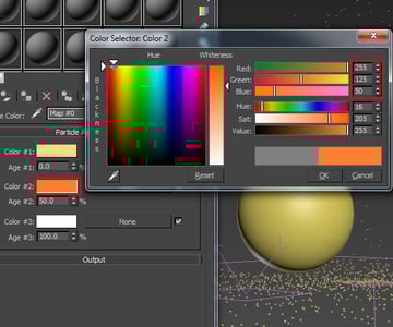 Press M to open the Material Editor. Select an empty slot and click on the Diffuse channel. This opens the Material/ Map Browser window. Here select the Particle Age material and click on OK.