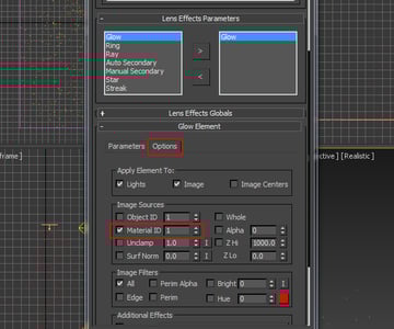 Now click on the Options tab. Here set the Material ID to 1. This is the same material ID which has been assigned to the particle material.
