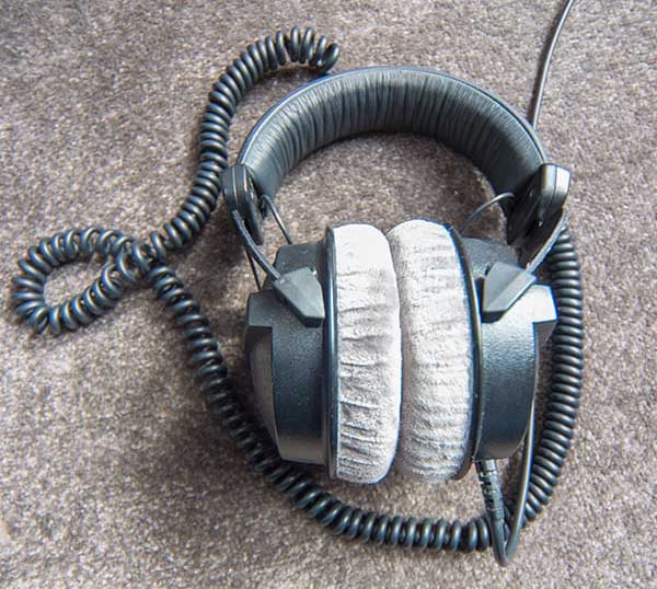 These DT 770 Pro headphones from Beyerdynamic are around £100 to buy and are mostly used for 'studio' work. We also have a cheaper pair for in the field:
