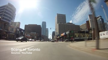 If you have established the cityscape is Toronto, neighbourhood where a person lives, next you might want to establish the location where your scene is happening.